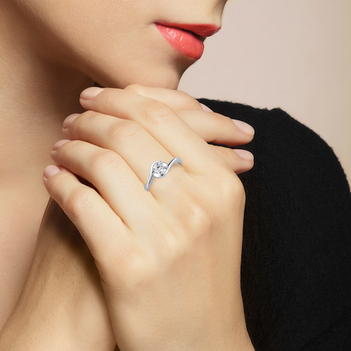 一體成形的的曲線造型環抱主鑽,簡約不失耀眼的設計,輕易摟獲雙眼焦點,輕柔傳遞雋永的氣息,好似一牽手便再不分離的守護之情。